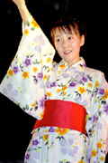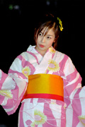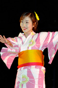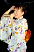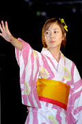 アルテミスいちダンサブルな彼女だが浴衣姿ではどうにもならず思いっきり簡略化した振りだが手を袖に隠して