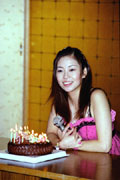 後半になりケーキ登場、ローソクの火がすぐに消えるので運ぶのに苦労している