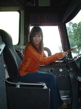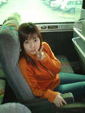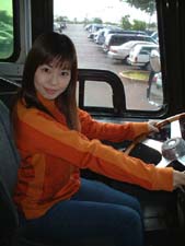 先にバスに乗ってた純菜ちゃんを撮った後、インパネを撮らしてと運転手に交渉してたら